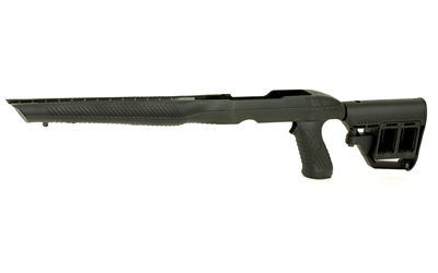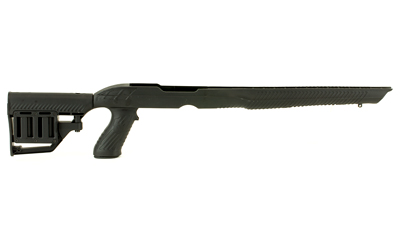 The Adaptive Tactical Tac-Hammer RM4 Stock is the most advanced and versatile stock available for the extremely popular Ruger 10/22 rifle. This innovative stock is loaded with more features than any other on the market. The pistol grip is designed to fit the spring-loaded TacTRED monopod for increased stability (sold separately). TacTRED provides a quick, stable single point rest on any surface and ensures maximum tripod-like stability when used with a front rail-mounted bipod or front rest. The removable barrel insert provides a custom fit for both standard tapered barrels and .920″ bull barrels. Patented Stowaway accessory rail is concealed in the forend. When reversed, the rail is available for a bi-pod or other accessories. Get custom length-of-pull for proper fit and improved performance with the adjustable M4 type butt-stock, equipped with ambidextrous storage compartments for two spare Ruger 10-round rotary magazines.