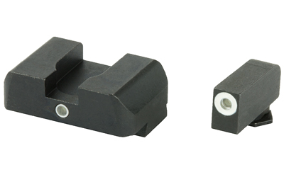 Sight set with green tritium lamp front and one green tritium lamp rear for Glocks. Designed for simple front sight acquisition while retaining rear illumination.