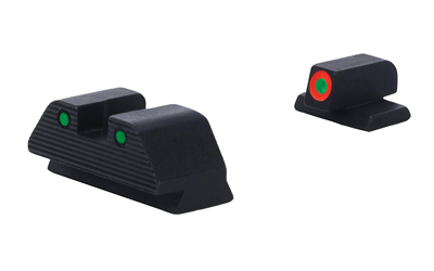 What Ameriglo learned from their award-winning U.S. Federal Government contract sights, Ameriglo put into the AMERIGLO Trooper sight set. This three-dot design offers an instant sight picture and proven accuracy you can trust to defend night and day. The Trooper Series comes with a ProGlo front sight and a serrated square notch rear sight with green tritium.