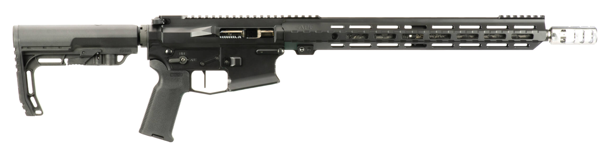 16 PROOF RESEARCH Carbon Fiber Barrel – Elite Series Muzzle Brake – 15 MLOK Handguard – .750 Superlative Arms Adjustable Gas Block – DLC Lightweight BCG – Timney Impact 3-4lb Single-Stage Straight Trigger – Ambi Safety Selector – Mission First Battlelink Minimalist Adjustable Stock – Magpul K2 Grip