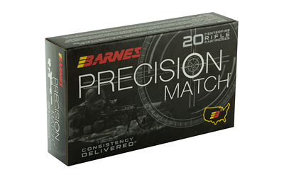 With the introduction of the most accurate commercially loaded round on the planet, Barnes enters the world of match ammunition in 2015 with Precision Match. As a proud supplier of precision ammunition to America’s Military Elite, Barnes makes top tier ammunition commercially available for the elite, technical shooter who demands uncompromising performance. Precision Match Ammunition delivers exceptionally accurate, long range allowing the shooter to SEND IT WITH CONFIDENCE every time. Precision Match, engineered for precision at extreme distances, features exceptionally low standard deviations and extreme variations due to Barnes’ exacting manufacturing and quality standards. Precision Match rounds are loaded with a match grade OTM (Open Tip Match) BT projectile featuring a long boat tail and high B.C. As an additional bonus, scan the QR code located on the back of each box to view Doppler radar generated drop tables specific to each load. Precision Match will be offered in 5.56 X 45MM 69 grain OTM BT, 5.56 X 45MM 85 grain OTM BT, 6.5 Creedmoor 140 grain OTM BT, 308 Win 175 grain OTM BT, 300 Win Mag 220 grain OTM BT, and 338 Lapua Mag 300 grain OTM BT.