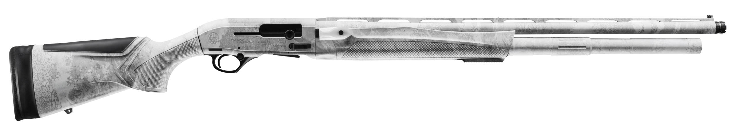 NEW FOR 2024 IS THE A300 ULTIMA SNOW GOOSE. – Using the latest technologies to give you the edge over those wary birds the A300 Ultima Snow Goose ensures your success during your snow goose conservation season. Made by snow goose hunters for snow goose hunters this feature-packed shotgun has it all. – TRUSTED & RELIABLE BERETTA AGS GAS SYSTEM & KICK-OFF® – The patented Beretta AGS Gas System is designed to reliably & quickly cycle 2 ¾ & 3 Magnum shells along with the KICK-OFF® recoil reduction so you can stay on goose after goose after goose – SUPPRESSOR READY 28 BARREL WITH STEPPED RIB – Equipped with a suppressor-ready barrel it offers reduced noise which is crucial for avoiding spooking wary snow geese. The stepped rib aids in target alignment keeping those wary birds in focus as they drop into your decoy spread. – 10 + 1 MAGAZINE CAPACITY – Lots of geese require lots of ammo. The 10+1 magazine capacity for 2 ¾ or 9+1 for 3 shells this shotgun guarantees you wont be caught short when the birds are plentiful. – ARCTIC FOX CAMOUFLAGE OR BLACK SYNTHETIC – To stay concealed from over 5-1500 sets of eyes looking down for you the new A300 Ultima Snow Goose is offered in RealTree® Arctic Fox camouflage or in Black synthetic so you can blend into your environment or your decoy spread. – RMR FOOTPRINT INTEGRATED INTO THE RECEIVER – The A300 Ultima Snow Goose is optic-ready for ultra-fast shooting ensuring that your eyes stay on the target as you pull the trigger and swiftly transition to the next one. – ALL NEW FOREND – The A300 Ultima Snow Goose features a sleeker thinner design for the forend that enhances grip and control during hunts. Effortlessly customize your setup with the integrated M-LOK® mounting system which offers versatile options for mounting cameras and accessories. – ACTION SEMI-AUTOMATIC GAS OPERATED – CHOKE SYSTEM MOBILE – FINISH CERAKOTE – STOCK & FOREND SYNTHETIC – RECOIL PAD MICROCORE 1/2 – SAFETY MANUAL – MAGAZINE CAPACITY 10+1 – RECEIVER 7075-T6 – RIB TYPE 7×7 STEPPED – LENGTH- OF-PULL 14.25 – BARREL LENGTH 28 – LENGTH OVERALL 47.8 – WEIGHT 8.1 LBS