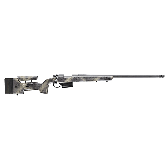 Bridging the gap between the B-14 and Premier Series we bring you the B-14 Wilderness Series. This series tackles the need for rifles that can withstand the rugged and unforgiving wilderness while blending into those very same elements hence Bergara’s hand-painted camouflage stocks with added webbing for increased texture and grip. All Wilderness Series barreled actions feature Sniper Grey Cerakote finishes for advanced protection in extremely harsh weather. – The B-14 Wilderness HMR rifle features our integrated mini-chassis molded into the stock to give the rifle repeatable bedding and accuracy. This rifle is also outfitted with a Bergara Performance Trigger and a 5 round (3 round: 6.5 PRC) AICS style detachable magazine. The world-renowned (#6) Bergara barrel is finished in Sniper Grey Cerakote and features a seamless omnidirectional and multi-ported muzzle brake that will reduce felt recoil by up to 35 percent. The Wilderness HMR is complemented by our super-smooth B-14 Action which is a two-lug system with a sliding plate extractor and a coned bolt nose and breech to ensure smooth feeding and extraction of the cartridge. It has been factory drilled and tapped to fit Remington 700 style rings and bases and includes QD flush cups adjustable cheek piece and length-of-pull spacers. – The B-14 Wilderness Series provides a great deal of added value for the hunter that wants a no-nonsense performer that is built to withstand the backcountry. We are breaking through the uninhabited and inhospitable regions to bring you the weather protection needed to withstand these conditions. – We believe the word wilderness while may be rugged harsh and unforgiving describes an experience rather than a location. We built the B-14 Wilderness Series to match every stride taken off the beaten trail. – Weight: 9.5 lbs-9.9 lbs – Overall Length: 40-47.5 – Barrel Length: 20-26 – Finish: Sniper Grey Cerakote – Magazine: AICS style detachable – Mag Capacity: 5 round mag provided (3 round mag: 6.5 PRC) – Barrel Taper: No. 6 – Muzzle: Threaded 5/8-24 with Omni Muzzle Brake – Stock: Bergara HMR Molded with mini-chassis – Scope Mount: Fits Remington 700 bases with 6-48 screws – Trigger: Bergara Performance Trigger – Integrated QD flush cup sling mounts and swivel mounts – Adjustable cheek piece and length-of-pull