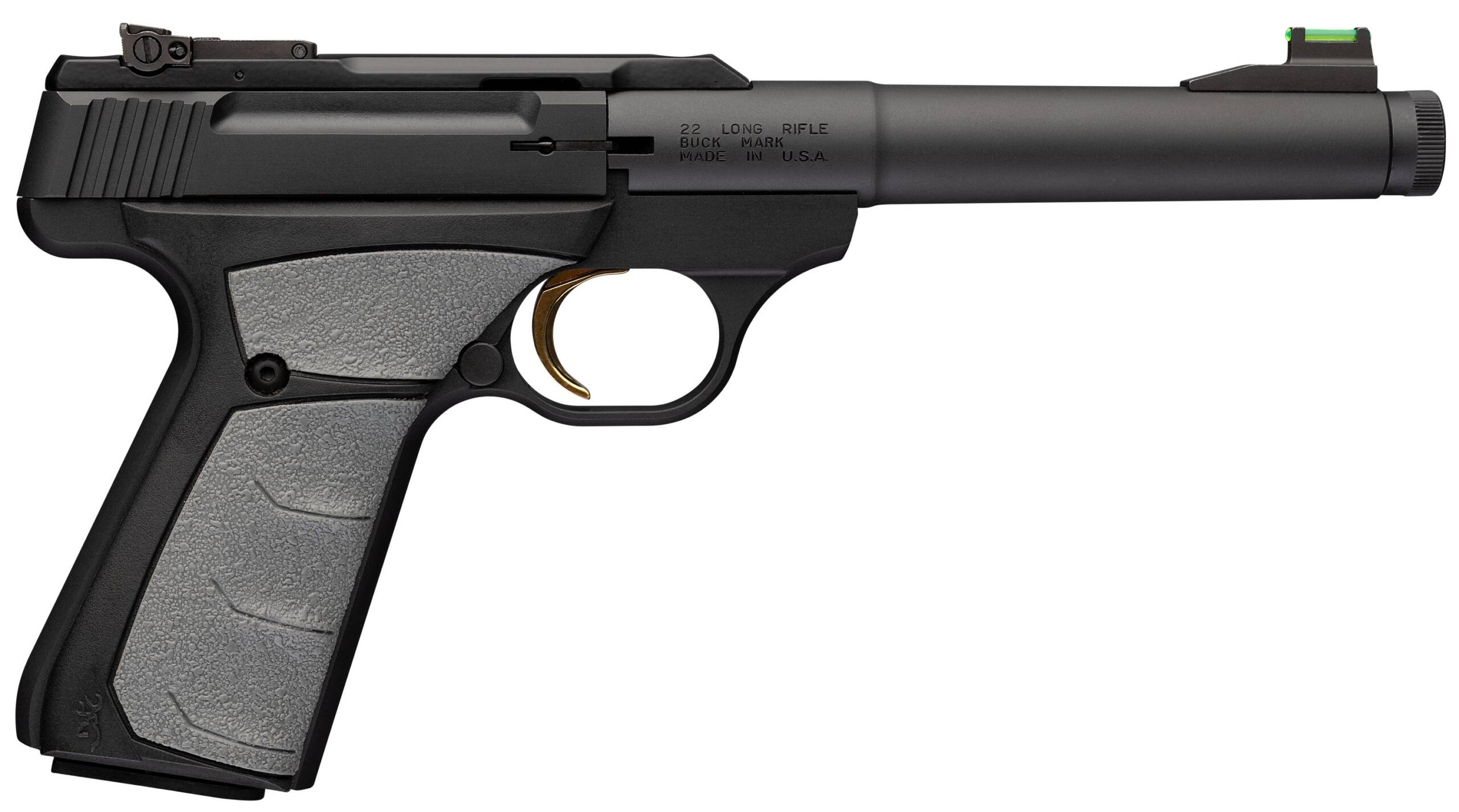 2026 SHOT Show Special – Autoloading 22 LR handgun with alloy receiver tapered bull barrel with suppressor-ready threads overmolded ambidextrous grips single-action trigger and Pro-Target adjustable rear sight. – Features – 5.9 matte blued tapered bull barrel – 1/2-28 TPI suppressor threads (thread protector included) – UFX grips with rubber overmolding – Green fiber-optic front sight – Includes pistol rug