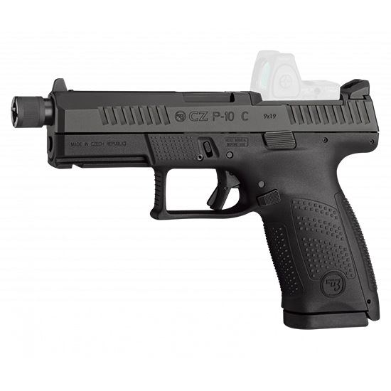 New for the US market in 2023 CZ-USA introduces two optics-ready and suppressor-ready P-10 pistols to its lineup. The full-sized P-10 F OR SR and compact P-10 C OR SR models inherit all the performance-driven features of the P-10 series. Like all P-10 series pistols CZ engineered the P-10 OR SR models for reliability outstanding accuracy extended service life and shooting comfort. The barrel and fiberglass-reinforced frame and slide feature an incredibly durable finish protecting them from mechanical damage and the elements. Both pistols feature a modified slide for attaching a red dot sight and an extended barrel with 1/2×28 UNEF 3A threads for mounting a suppressor the ultimate convenience for deploying these aftermarket accessories. OR SR pistols come equipped with iron sights with three luminescent dots for quick and intuitive aiming in low light. The iron sights co-witness perfectly with a red dot sight mounted on the modified slide. And their chamfered edges ensure smooth handling. Ergonomics and comfort are at the forefront of the P-10 OR SR’s design. Deep serrations on the front and rear of the slide improve grip for ease of operation while prominent grip checkering provides superb shooting comfort stability and safety. CZ also includes three interchangeable backstraps for customizing fit and reach to the trigger. – Product Name CZ P-10 C OR SR – Firearm Type Handgun – Chambering 9mm – Magazine Capacity 17 – Frame Polymer – Sights Three dot RMR Co-Witness Height – Barrel Length 4.6 in – Weight 27.1 oz – Overall Length 8 in – Width 1.26 in – Safety Trigger Safety FPB