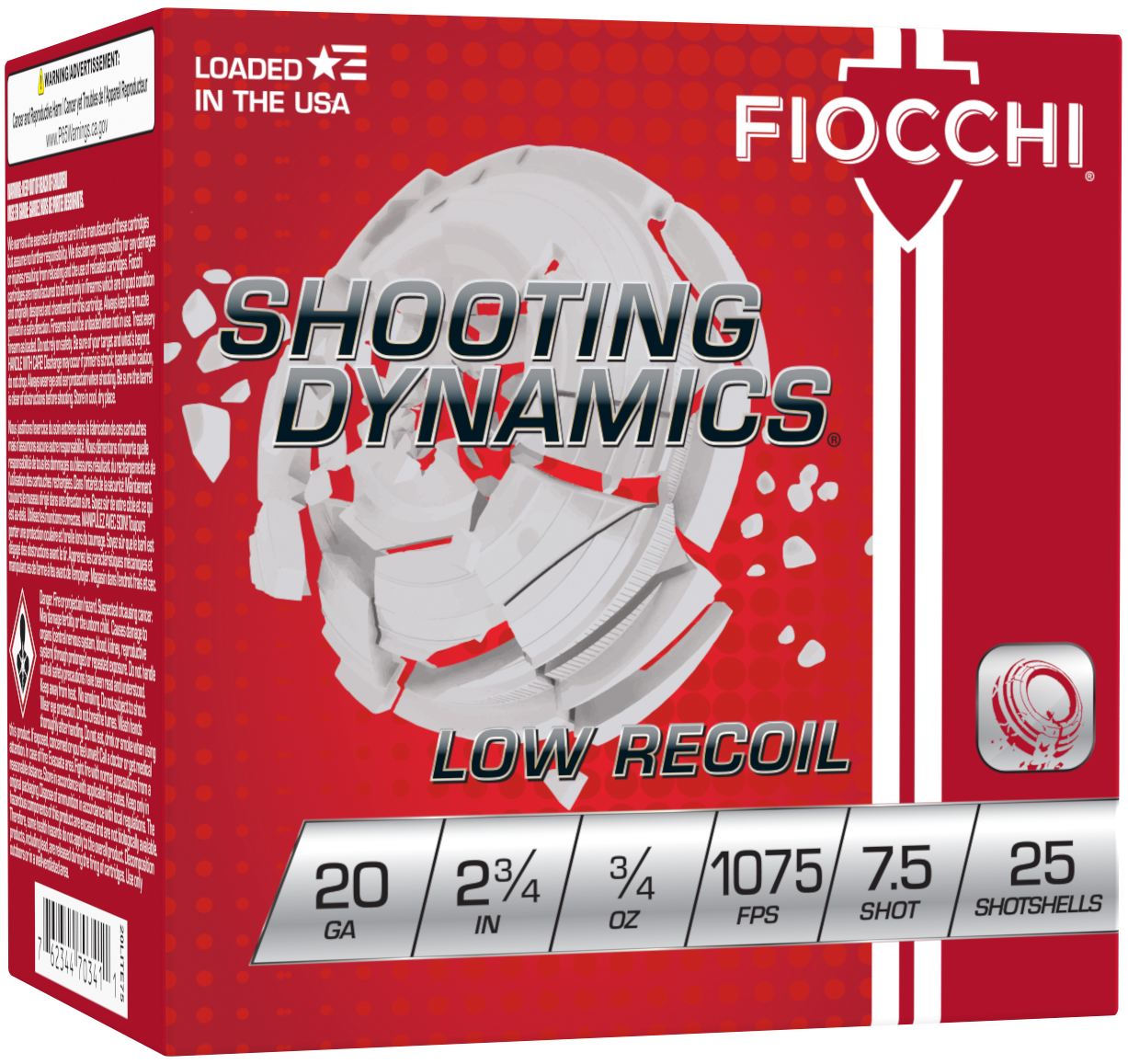 Fiocchi Low Recoil Trainer ammunition was developed for new shooters or shooters who are looking for a high performing training round without the recoil. Perfect for introducing new shooters to the sport especially those of small stature or who might be intimidated by full-power loads. This ammunition is loaded with the same quality and consistency of other Fiocchi target shooting loads. – GAUGE: 20 – LENGTH: 2 3/4 – HULL COLOR: Yellow – TYPE: Lead – OZ: 3/4 – FPS: 1075 – SHOT SIZE: 7.5 – LEAD FREE: No