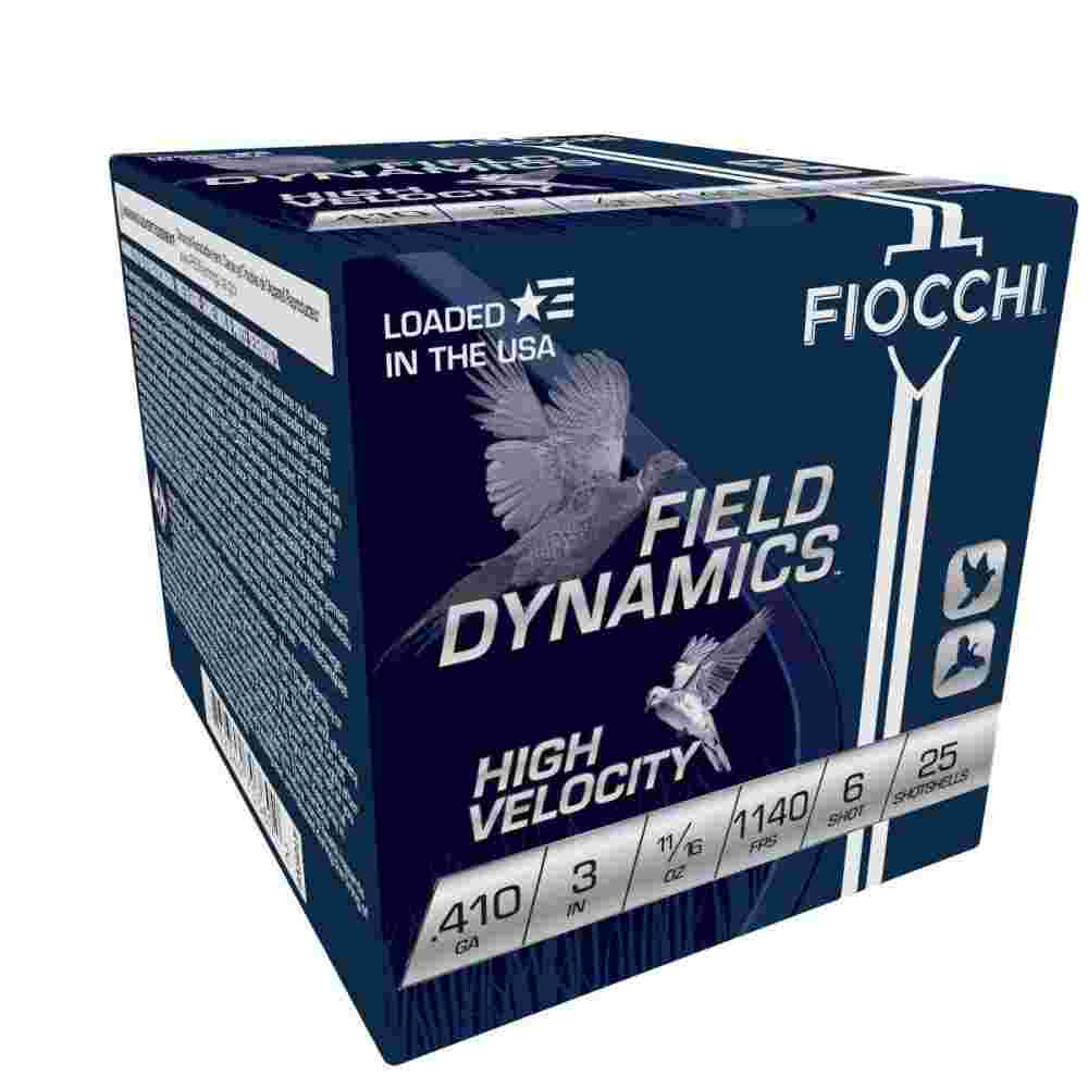Fiocchi High-Velocity Hunting Load .410 ga 3″ MAX 11/16 oz #6 1140 fps 25/rd