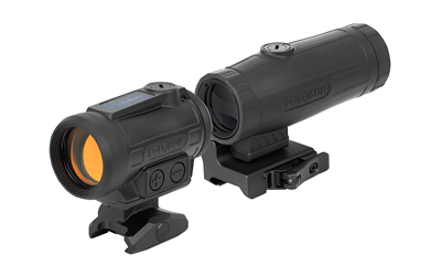 ARO (Advanced Rifle Optic) is an upgrade from Holosun’s popular 20mm 403 and 503 series optics. ARO features a new 22mm housing design that fits perfectly with their magnifier series and a 1.63-inch lower 1/3 co-witness pedestal mount. ARO is available as a 2MOA dot only or with their Multi-Reticle System (MRS) in Red, Green, or Gold.