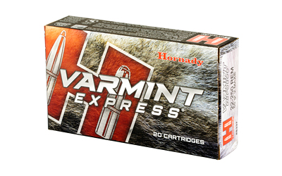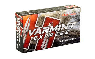 Hornady(R) Varmint Express(R) ammunition is designed around the hard-hitting performance of the famous V-MAX(R) bullet. Polymer tipped V-MAX(R) bullets deliver match accuracy, high ballistic coefficients, wind defying trajectories, and rapid fragmentation upon contact. Each Varmint Express(R) offering is loaded with high quality cases and carefully selected propellant and primers that are chosen to provide the best performance in each individual load.