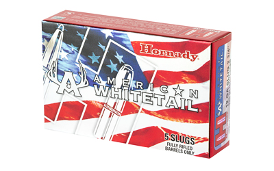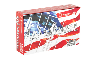 Designed for fully rifled barrels, Hornady American Whitetail(R) Slugs are loaded with 325-grain Hornady InterLock bullets. A hollow point serrated design initiates rapid expansion upon impact, and a tough, lead alloy core is lethal out to 200+ yards. The rigid polycarbonate sabot ensures accuracy. The end result is an accurate delivery system for a tough shotgun slug capable of taking the biggest midwestern whitetails.