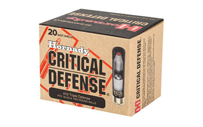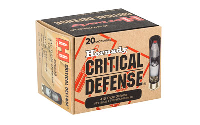 Delivering effective shot patterns that place all projectiles on a man-sized target at seven yards, the Critical Defense 410 features a unique Triple Defense projectile column consisting of two 35 caliber round balls topped with one non-jacketed FTX slug.