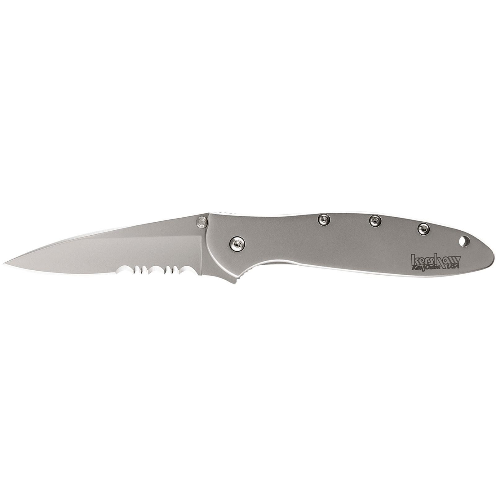 Kershaw Ken Onion Leek Folding Knife 3″ Partially Serrated Drop Point Blade Silver