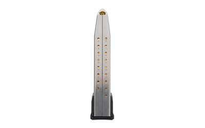 The AMAG 21 SG9 is a 21-round SIG P320 9mm handgun magazine that features a stainless-steel body with polymer sub-components. Magpul AMAGs include many of Magpul’s proven features, such as a high-visibility, controlled-tilt follower, stainless-steel spring, flared floorplate that’s easily removable for cleaning and maintenance, paint-pen dot matrix for magazine marking, and capacity-indicator windows that start at five (5) rounds and continue along the spine in one (1)-round increments.