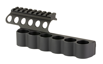 These SureShell shotshell carriers for the Beretta 1301 feature mounting brackets with integral top Picatinny sight rails. Using the top mounting screw holes found on the Beretta 1301 shotguns. The SureShell shotshell carriers are thus slung on the left side of the receiver, securely fastened at the top. No other shell carrier mounting method is as secure or looks as good.