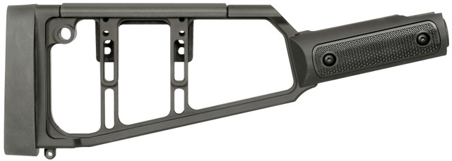 Compatible with Rossi 92 straight grip rifles – Polymer cheek piece provides adjustability for use with iron sights red dots or magnified optics – Cheek piece in the lowest position maintains the same height as the factory stock – Maintains factory length of pull. Spacer plates are an available add-on if a longer length is needed. – Ambidextrous design works for left and right-hand shooters – Exclusive Midwest Industries butt pad reduces felt recoil while maintaining a secure fit in your shoulder – Features several properly placed anti-rotation QD swivel sockets. Also incorporates one standard sling swivel location and stud for versatile sling placement – MI-designed grip panels give a unique look while providing ample texture if in a rainy or snowy environment – M-LOK compatible slots on either side for use with MI Universal Shell Holders or M-LOK panels for aesthetics – Provides factory length of pull to fit most users – Does not add weight over factory wood stock – Grip and stock beam made from Hard Coat Anodized 6061 Aluminum – Weight of Complete Unit: 1lb 4oz. – Made in the USA – Lifetime warranty