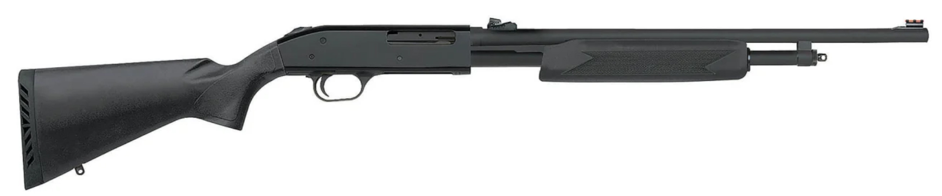 Bantam models have a smaller grip for easier trigger reach an EZ-Reach forend for shorter reach while cycling the action and shorter barrels for better balance. – Standard pump features include dual extractors steel-to-steel lockup twin action bars anti-jam elevator – Ambidextrous Safety – Compatible with Full-size 500 Stock – Specifications – Gauge .410 Bore – Action Type Pump-Action – Chamber Size 3 – Usage Hunting / Sporting Bantam – Barrel Length 20 – Barrel Finish Matte Blue – Choke Cylinder Bore – Capacity 5+1 – Length 38.75 – LOP 13 – LOP Type Fixed – Sights Adj. Rifle – Stock Synthetic (Black) – Weight 6
