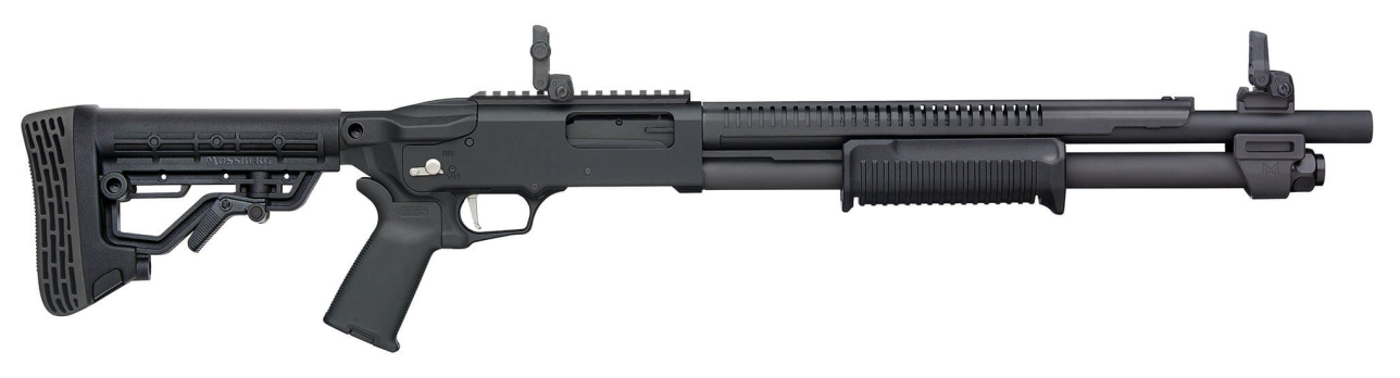 The 590R Rotary Safety Selector shotguns combine time-tested pump-action performance with ground-breaking new features like a rotary safety selector an ergonomically-designed forend and an integrated barrel/heat shield combination. – Ambidextrous AR-Style Rotary Safety Selector – 18.5 Barrel with Integrated Heat Shield – Magpul MBUS 3 Adjustable Sights – Enlarged Beveled Loading Port with Exposed Follower – Flat Profile Trigger with smooth crisp break – 5-Position Adjustable Stock w/MOE Pistol Grip Interchangeable Recoil Pad 2 QD Ports – Top Picatinny Rail optimized for AR-Style Optics – Specifications – Gauge 12 Gauge – Action Type Pump-Action – Chamber Size 3 – Usage Security – Barrel Type Integrated Heat Shield – Barrel Length 18.5 – Barrel Finish Phosphate – Choke Accu-Choke System Cylinder Bore Choke Installed – Capacity 6+1 – Length 36.25 – LOP 12-15.25 – LOP Type Adjustable – Sights Magpul MBUS 3 Adj Sights – Stock 5-Pos Adj Stock w/Interchangeable Pad MOE Pistol Grip Compact Forend (Black) – Trigger Flat Profile – Safety Rotary Safety Selector – Weight 7.1