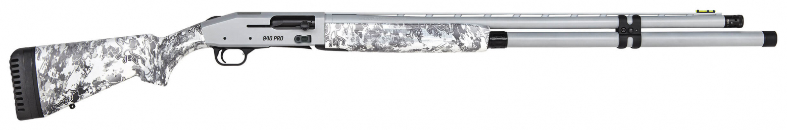 All 940 Pro Waterfowl shotguns now come optic-ready with patent-pending receiver cuts that accept direct mounting of Shield RMSc-pattern micro dot sights for improved eye alignment and target aquisition.Inside you will find a host of corrosion-resistant internal parts including a boron-nitride coated gas piston magazine tube and hammer and sear for improved performance in the blind in the pit or while traversing upland fields. For additional protection our 940 Pro Waterfowl models feature a coated return spring tube chrome-lined chambers and bores and a stainless steel return spring to help when facing wet unforgiving conditions. – Optic-Ready (Shield RMSc-Pattern) – Clean-running Gas-vent System – Quick-empty Magazine Release – Adjustable Length of Pull – Drilled and Tapped Receiver – Self-Draining Stock – Chrome-lined Chamber/Bore – Stainless Steel Return Spring – Adjustable for Drop at Comb/Cast – HIVIZ CompSight Fiber Optic Sight – Gauge 12 Gauge – Action Type Semi-Auto – Chamber Size 3 – Usage Hunting / Sporting – Barrel Type Vent Rib – Barrel Length 28 – Barrel Finish Cerakote Battleship Gray – Choke X-Factor Ext Tube – Capacity 12+1 – Length 50.75 – LOP 13-14.25 – LOP Type Adjustable – Sights Front FO; Optic-Ready – Stock Adj. LOP Cast Drop – Synthetic (TrueTimber Viper Snow) – Weight 8.25