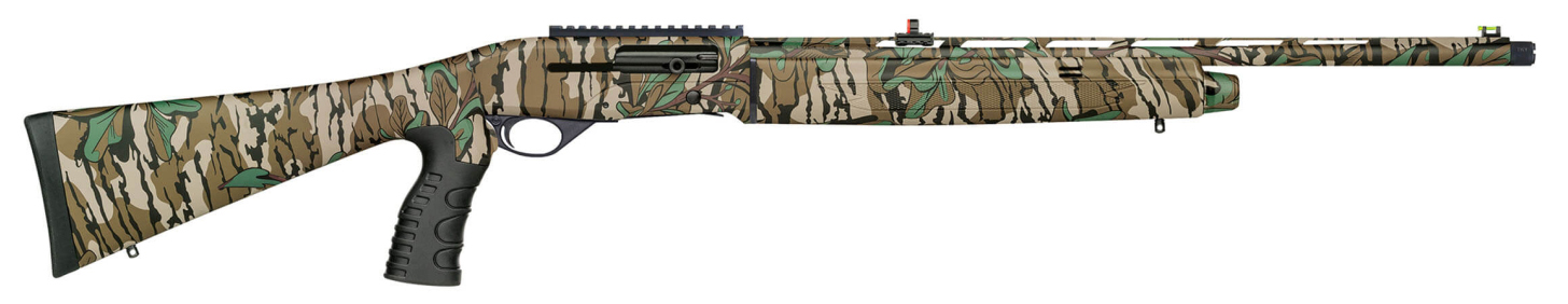 Whether youre a first-timer or accomplished in the shooting sports you cant go wrong with Mossberg International sub-gauge autoloaders. Lightweight and quick-swinging these versatile smaller-gauge shotguns provide maneuverability when hunting nimble upland and woodland targets or when busting clays. – Smooth-cycling Gas-Operated System – Extended Turkey Choke – Top Picatinny Rail – Light Carry Weight Low Recoil – Cross-bolt Safety – Gauge .410 Bore – Action Type Semi-Auto – Chamber Size 3 – Usage Hunting / Sporting – Barrel Type Vent Rib – Barrel Length 22 – Barrel Finish Mossy Oak Greenleaf – Choke Ext Turkey Tube – Capacity 4+1 – Length 41.75 – LOP 12.75 – LOP Type Fixed – Sights FO Ghost RIng – Stock Synthetic Pistol Grip (Mossy Oak Greenleaf) – Weight 5.5