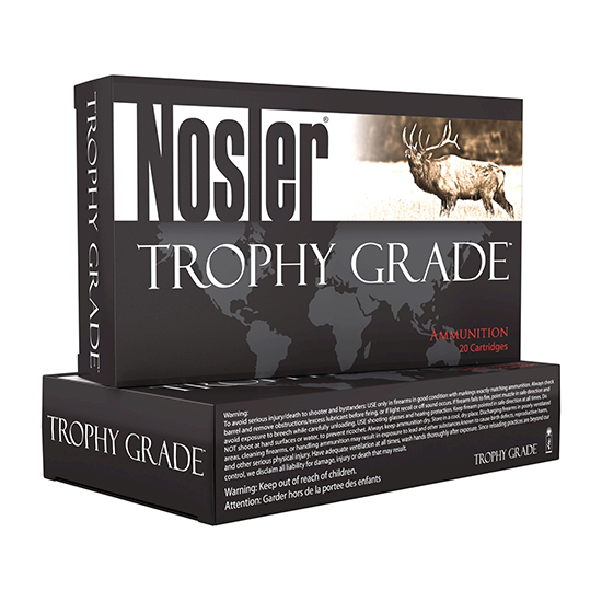 Manufactured to Nosler’s strict quality standards Trophy Grade ammunition uses Nosler Custom brass and Nosler bullets to attain optimum performance no matter where your hunting trip takes you. Whether you want your ammunition loaded with AccuBond Partition Ballistic Tip or E-Tip Nosler Trophy Grade Ammunition will have the right load for the right game. – Caliber: 22 Nosler – Bullet Type: AccuBond – Bullet Weight: 70 gr – Muzzle Energy: 1744 ft / lbs – Muzzle Velocity: 3350 fps – Rounds Per Box: 20