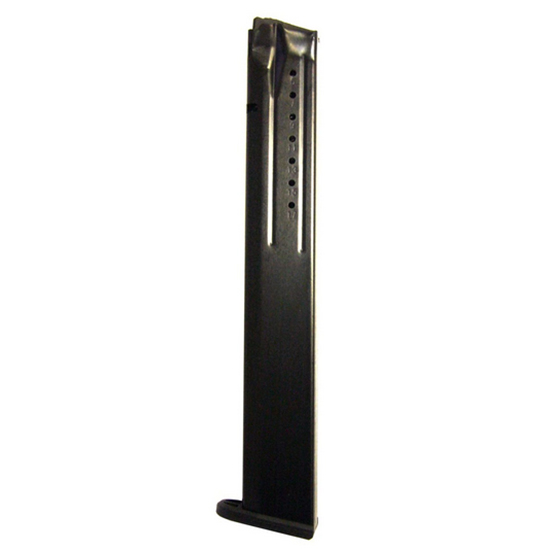 32-round magazine – Fits Smith & Wesson® M&P® 9mm series pistols – Magazine body constructed of heat treated steel with black oxide finish – Injection molded magazine follower – Magazine spring formed from heat treated chrome silicone wire – Made in USA
