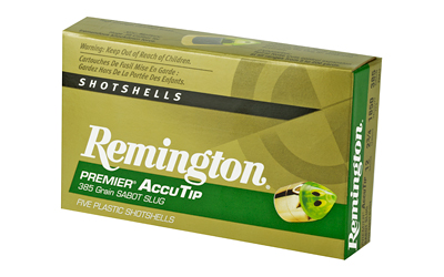 It doesn’t just look intimidating, it’s flattening whitetails and competitors in the tipped-slug market with devastating ferocity. Guided by Remington’s new Power Port Tip, AccuTip Sabot Slugs deliver a degree of accuracy and terminal performance unmatched by any other they tested. This masterpiece of aerodynamics consistently prints tiny 100-yard groups and transfers tremendous knockdown force to the farthest reaches of shotgun range. It’s the largest tipped slug you’ll find anywhere. In field testing, these huge .58-caliber slugs produced gaping wound channels and crumpled every deer it touched with a single shot. From 5 to 200 yards, it yields perfect mushrooms and over 95% weight retention thanks to its spiral nose cuts and high-strength cartridge brass jacket. Designed for rifled barrels only. Available in 23/4″ or 3″ 12-gauge and 20-gauge versions.