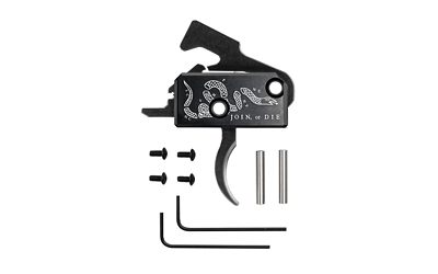 The RISE RA-140 Super Sporting Trigger (SST) with a special-edition Join or Die design is a high-performing, cost-effective upgrade to replace mil-spec triggers. It has a clean break with a short reset and comes with anti-walk pins for installation. The triggers are backed by RISE’s Best-Bang-for-Your-Buck Performance Guarantee and RISE’s Lifetime Warranty.