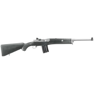 Caliber: 5.56 NATO / 223 Rem – Stock: Black Synthetic – Front Sight: Blade – Rear Sight: Adjustable – Barrel Length: 18.50 – Material: Stainless Steel – Twist: 1:9 RH – Capacity: 20 – Finish: Matte Stainless – Weight: 6.7 lb. – Overall Length: 37.50 – Length of Pull: 13 – Grooves: 6 – Cold hammer-forged barrel results in ultra-precise rifling that provides exceptional accuracy longevity and easy cleaning. – Simple rugged Garand-style action with breechbolt locking system a fixed-piston gas system and self-cleaning moving gas cylinder gives unparalleled reliability under harsh operating conditions. – Patented integral scope mounts machined directly on the solid steel receiver provide a stable mounting surface for scope rings eliminating a potential source of looseness and inaccuracy in the field (scope rings included). – Accurate sighting system with ghost ring adjustable rear aperture sight and a non-glare protected blade front sight. – Receiver is drilled and tapped for mounting the included Picatinny rail. – Also includes: two magazines; Picatinny rail; scope rings.