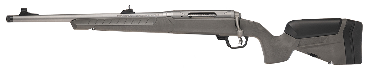 Light compact and purpose-built for your close encounter hunting situations 110 Ridge Hunter blends precision with practicality: a Flat Dark Gray 110 Trophy stock with LOP adjustment lets you dial in a perfect fit in the field while a matte-finish stainless-steel barreled action and jeweled bolt body deliver corrosion resistance and smooth cycling. The user-adjustable AccuTrigger gives confidence-inspiring repeatable breaks and the short 16.5-20 stainless steel barrels with a medium contour keep the rifle maneuverable in thick cover without sacrificing accuracy. A threaded muzzle iron sights and AICS detachable magazines make the platform versatile and modern and offering every caliber in left-hand configuration ensures southpaw hunters get the same compact performance and reliability. – FEATURES – Flat Dark Gray Trophy Stock w/LOP Adjustment – Exclusive LimbSaver® Recoil Pad With 50% Recoil Reduction – Matte Finish Stainless Steel Barreled Action – Jeweled Bolt Body – User-adjustable AccuTrigger – Stainless Steel Barrels – Medium Contour Barrels – Threaded Barrel – Iron Sights – AICS Magazine