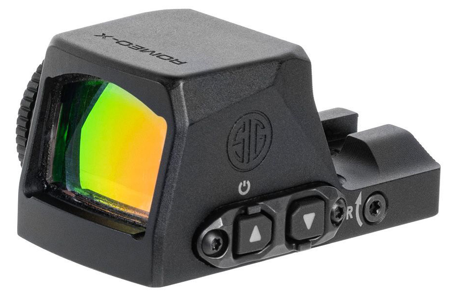 Introducing the new ROMEO-X optics family. Built from the ground up with industry-leading functionality the ROMEO-X is the result of our experience developing durable red-dot technology that’s trusted by the military and put into a streamlined civilian package. Featuring a CNC 7075 aluminum housing intuitive adjustment buttons a side-mounted battery compartment and an ultra-low deck height that gives you the ability to co-witness with standard height iron sights. Designed tested and assembled in the USA the ROMEO-X boasts direct mounting footprints for your favorite optics-ready pistols. – FEATURES: – Inspired by MIL-SPEC ROMEO-M17 – CNC Machined 7075 Aluminum Housing – Patent-Pending Beryllium Copper Flexure Arm – Distortion Free Aspherical Lens – MOTAC (Motion Activated Illumination) – Low Deck Height for Standard-Height Iron Sight Co-Witness – 20000 Hour Battery Life With Side Load Battery – 15 Illumination Settings Including 3 Night Vision – Assembled in the U.S.A. – MOUNT TYPE R1P/R2 and all DeltaPoint® Pro – COLOR Black – ADJUSTMENT INCREMENTS 1.5 MOA – MAGNIFICATION 1x – OBJECTIVE LENS DIAMETER (MM) 24 mm – BATTERY (1) CR1632 – RETICLE 6 MOA Red Dot – OVERALL LENGTH 1.83 in [46.48 mm] – OVERALL WIDTH 1.23 in [31.24 mm] – HEIGHT 0.94 in [23.88 mm] – WEIGHT 1.15 oz [32.60 g] – WATERPROOFING IPX-7 – ILLUMINATION SETTINGS 12 Daytime 3 Night Vision – TOTAL ELEVATION TRAVEL 80 MOA – TOTAL WINDAGE TRAVEL 80 MOA – RUN TIME 20000 hrs