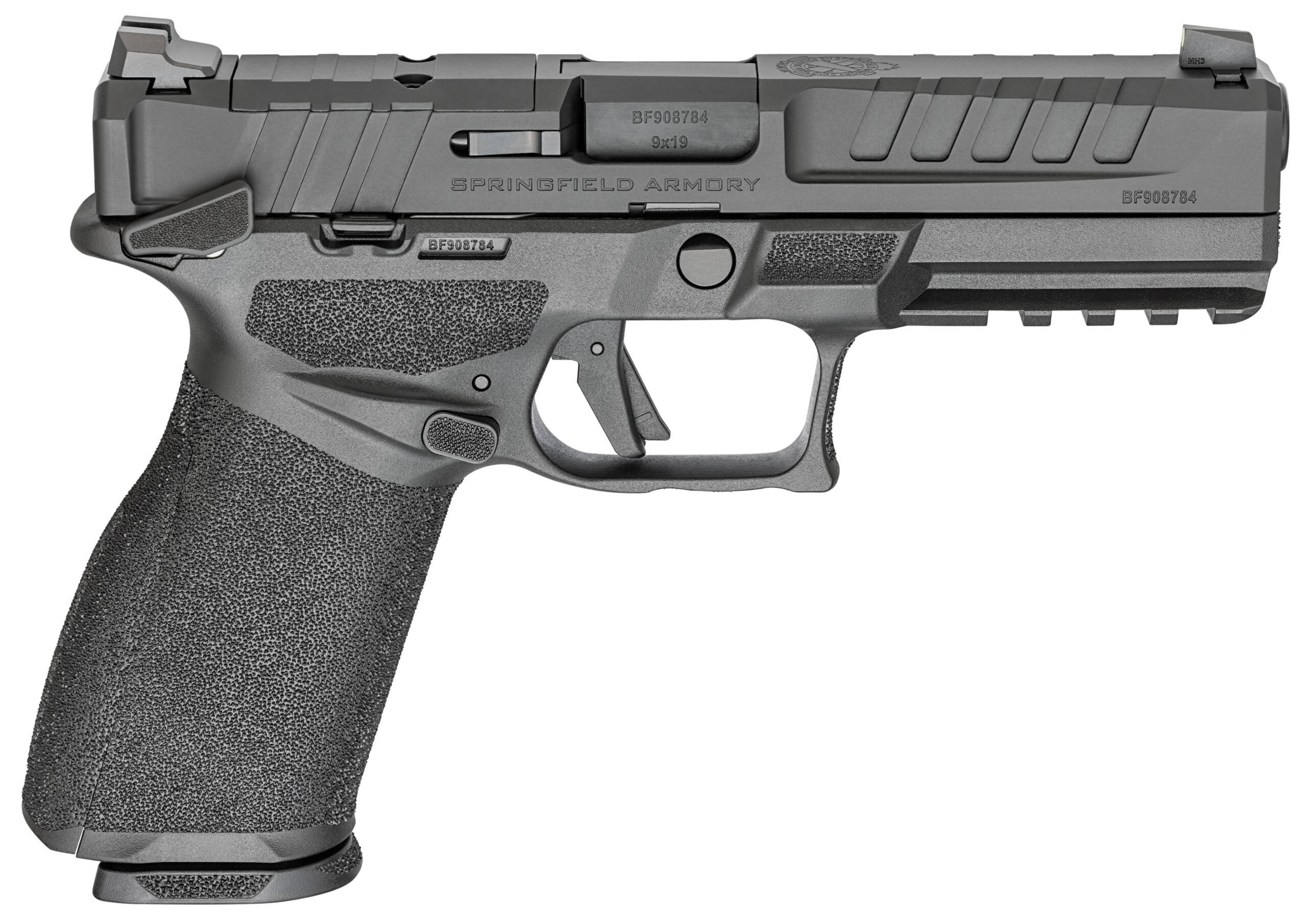 Setting a new standard for modern striker-fired duty pistols with a host of patent pending features this modular pistol is designed around a robust stainless steel chassis. Engineered with superior ergonomics and built to withstand the harshest conditions the 15-round Echelon with frame-mounted manual thumb safety is configured for residents in states with magazine capacity limitations. In addition this fully ambidextrous pistol employs a revolutionary optics mounting system that allows for unparalleled adaptability with a broad range of optics. – Caliber 9mm – Color Black – Barrel 4.5 Hammer Forged Steel Melonite® Finish 1:10 – Slide Billet Machined Melonite® Finish Optics Ready – Frame Black Polymer Manual Safety – Sights Tritium / Luminescent Front Tactical Rack U-Dot Rear – Recoil System Captive – Grip Width 1.2 – Magazines (2) 15-Round – Weight 23.9 oz – Length 8 – Height 5.5