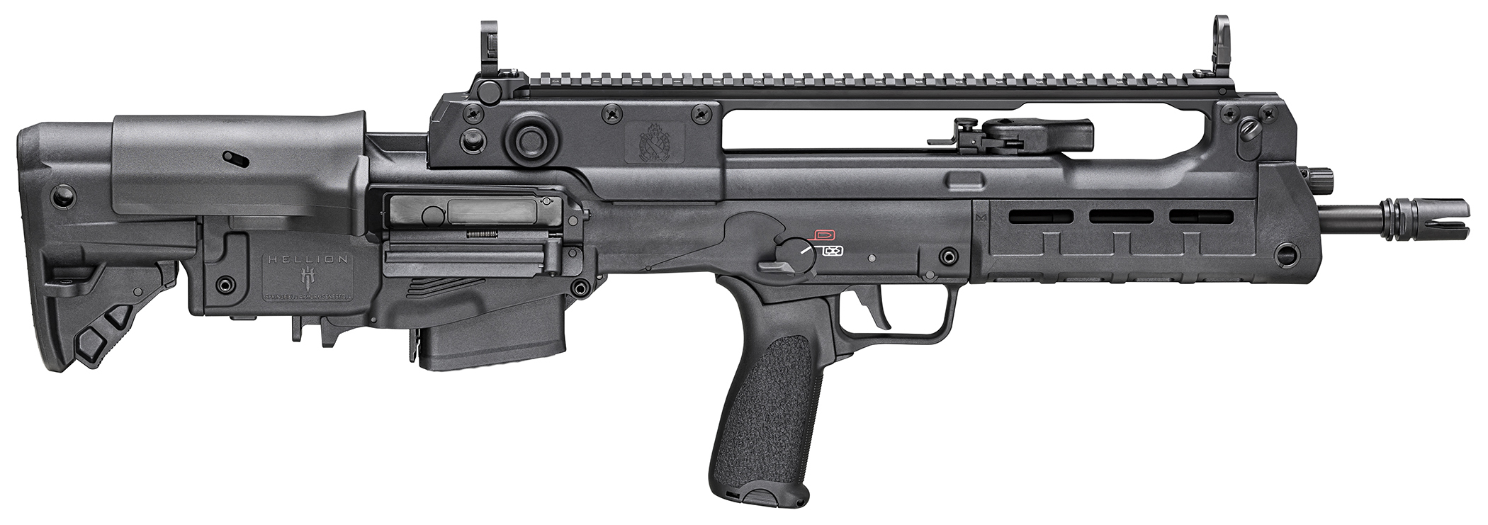 Answering the call for superior ballistic performance in a short adaptable platform Springfield Armory is proud to announce the 10-Round Hellion ideal for restrictive locales. Featuring a Magpul 10-round magazine this bullpup configuration 5.56mm has the action located behind the trigger for an overall length of just 28.25 while still possessing a 16 barrel. The 10-Round Hellion sports ambidextrous controls that work in concert with a reversible case ejection system allowing it to be easily fired from either shoulder. The result? A 5.56mm that combines portability with performance. – Caliber 5.56x45mm NATO (.223 REM) – Color Black – Barrel 16 CMV Melonite® 1:7 – Front Sight Integrated Flip-Up Elevation Adjustable – Rear Sight Integrated Flip-Up w/ 5-Position Aperture Windage Adjustable – Bolt Carrier Group Proprietary Melonite® – Gas System 2-Position Adjustable Short Stroke Piston – Handguard Polymer M-Lok® – Stock 5-Position Adjustable w/ Cheek Riser – Muzzle Device 4-Prong Flash Hider – Charging Handle Ambidextrous Non-Reciprocating – Safety Switch Ambidextrous – Grip BCMGUNFIGHTER Mod 3 – Magazines (1) 10-Round Magpul PMAG Gen M3 – Weight 8 lbs – Length 28.25-29.75