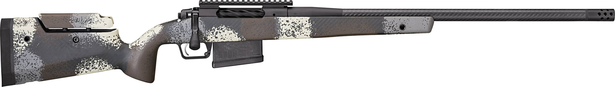 Springfield Armory® has a storied history of building fine firearms for defense and competition. Now our skilled gun makers set their sights on their next pursuit the Model 2020 Waypoint premium American-made bolt action hunting rifle. This .300 PRC long-action rifle features a custom painted Ridgeline carbon fiber stock with an adjustable cheek comb and the carbon fiber barrel delivers precision performance downrange. See the way with the Model 2020 Waypoint. – Caliber .300 PRC – Color Ridgeline Camo – Barrel 24 Carbon Fiber 1:8.5 Graphite Black Cerakote® H-146 – Receiver Model 2020 Stainless Steel Graphite Black Cerakote® H-146 – Optic Mounting Picatinny Mount Rem 700 SA Pattern 6-48 Screws – Bolt Fluted 4140 Tool Steel Nitride – Stock Hybrid Profile Adjustable Carbon Fiber M-Lok® QD Cups – Trigger TriggerTech Adjustable 2.5-5 lbs – Muzzle Device SA Radial Brake Graphite Black Cerakote® H-146 – Magazines (1) 3-Round Accumag – Weight 8 lbs 2 oz – Length 46