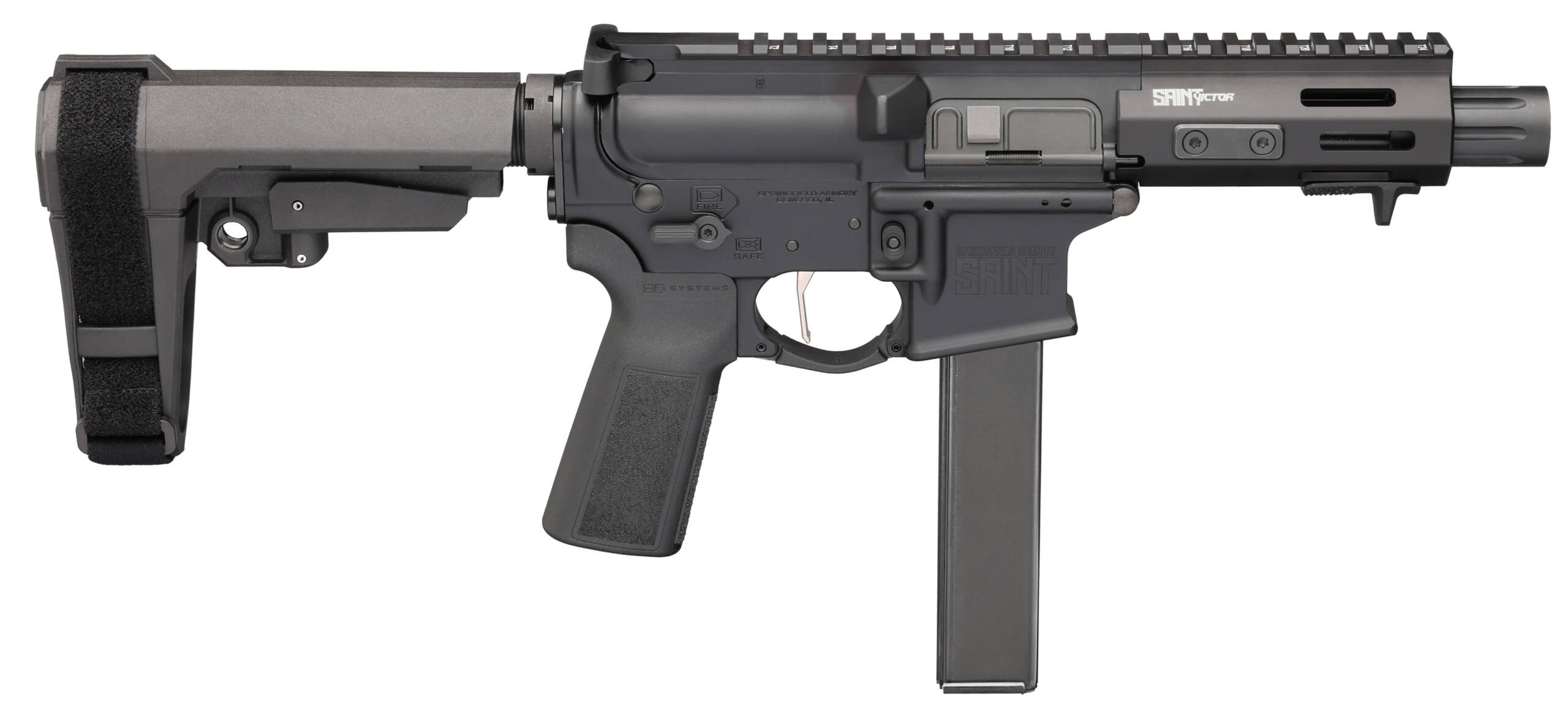 CALIBER 9mm – COLOR: Black – BARREL: 5.5 CMV Melonite® 1:10 – UPPER RECEIVER: Forged 7075 T6 Aluminum Type III Hardcoat Anodized – LOWER RECEIVER: Forged 7075 T6 Aluminum Type III Hardcoat AnodizedAccu-Tite Tension System – BOLT CARRIER GROUP: 9mm Blowback – HANDGUARD: Aluminum Free Float w/ SA Locking Tabs M-Lok – PISTOL BRACE: SB Tactical SBA3 – TRIGGER: Nickel Boron Coated Flat – MUZZLE DEVICE: SA Blast Diverter – RECEIVER EXTENSION: 3-Position Adjustable – RECEIVER END PLATE: QD – CHARGING HANDLE: Standard – SAFETY SWITCH: Ambidextrous – TRIGGER GUARD: B5 Systems Polymer – GRIP: B5 Systems Type 23 P-Grip – MAGAZINES:(1) 32-Round – WEIGHT:5 lbs 12 oz – LENGTH:20-22.5