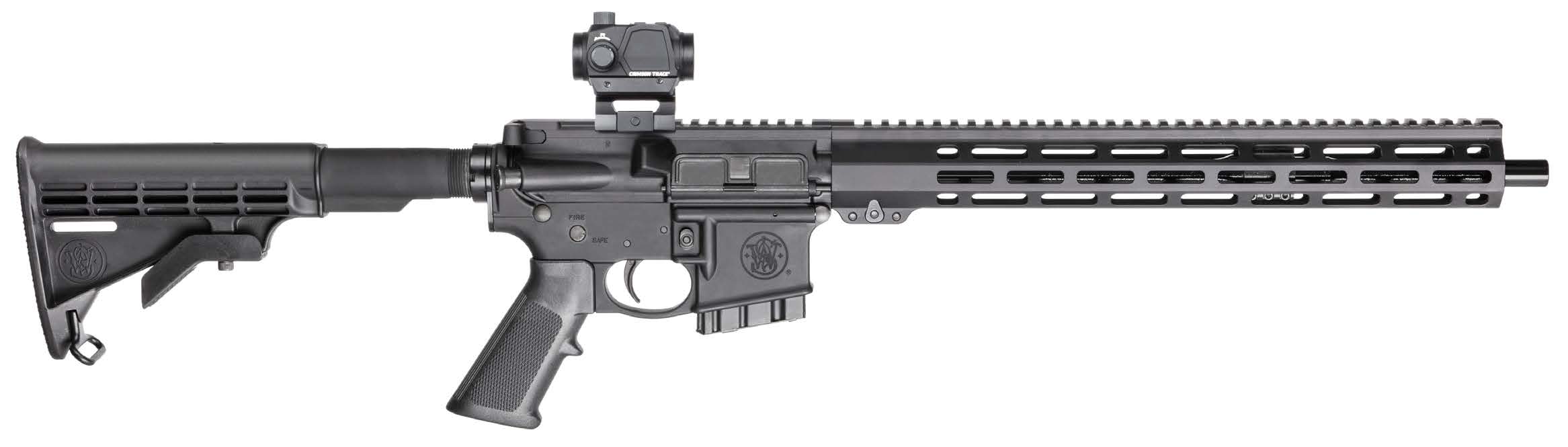 Built to perform under various conditions the M&P SPORT III rifle is as versatile as it is reliable. Engineered for a wide variety of recreation sport shooting and professional applications. The new SPORT III offers more options to accessorize than the previous generations. Lightweight and rugged the SPORT III embodies the best combination of function and form. Get unmatched value with the new M&P SPORT III. – This bundle includes a compact Crimson Trace® red dot rifle sight. It features a 4.0 MOA round aiming dot the CTS-106 will elevate your rifles performance potential instantly. Installed in seconds by utilizing an included riser for rail mounting the red dot attaches effortlessly to Picatinny rail sections. It is user adjustable for windage and elevation. The battery life is greater than 50 hours. It has side accessible battery access and it is constructed with a 6061-series aluminum body. – Model M&P®15 SPORT III 10-round state compliant version Bundle – Caliber 5.56 NATO/223 REM – Rifle Weight 6.5 lbs. (2948.4 g) – Handguard Free-floating 15 M-LOK® – Grip Polymer – Top Rail Picatinny-style full-length – Width 2.5 (6.4 cm) – Barrel 16 Heavy (40.6 cm) – Stock Fixed length Not adjustable – Overall Height 9.5 (24.1 cm) w/sight Installed – Receiver(s) 7075-T6 Aluminum – Barrel Material 4140 Steel w/Armornite® finish – Overall Length 34 (86.4 cm) – Action Gas operated Semi-auto – Other Bolt forward assist & dust cover – Rifling 1:8 Twist 5R rifling