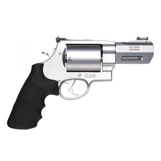 In 2003 the gunsmiths and engineers at Smith & Wesson wanted to deliver maximum power for serious handgun hunters. The power they sought required an entirely new frame the massive X-Frame™ and was the basis for the new Model S&W500™ the most powerful production revolver in the world. This ushered in the era of the big gun and was only the beginning. For ultimate power and velocity there’s nothing even close to an X-Frame model handgun. – HI VIZ® Fiber Optic Front Sight – Trigger Overtravel Stop – PC Tuned Action – Unfluted Cylinder – PC Gun Rug Included – Caliber: .500 S&W Magnum – Capacity: 5 – Barrel Length: 3.5 / 8.9 cm – Overall Length: 9.9 – Front Sight: HI VIZ® Fiber Optic – Rear Sight: White Outline Adjustable – Action: Single/Double Action – Grip: Synthetic – Weight: 56.8 oz / 1610.3g – Barrel Material: Stainless Steel – Frame Material: Stainless Steel