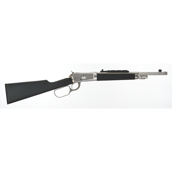 The Alaskan combines tradition with modern technology creating one of the fastest handling 1892 Lever Action Rifles designed specifically for the hunting market. The Alaskan delivers serious knock-down power when using Hornady Leverevolution ammunition which the action is specifically tuned for along with it’s time-tested 1892 action design. These rifles feature a durable matte chrome finish and D shaped lever. The sights include a rear weaver rail peep sight and front red fiber optic while the half-octagonal barrel is drilled and tapped for Scout Mount optics and Weaver 61 bases. The barrel is also threaded 5/8 x 24 and comes with a thread protector installed. The stock and forend are walnut wood with a black over-molded rubber soft touch finish and rubber butt pad. The take down action disassembly is the same an original 1892 take down disassembly and has interrupted threads on the receiver to allow removal of the barrel. To take down the rifle the action must be levered open the disassembly lever on the magazine tube used to unscrew the tube until it is free from the receiver then while holding the tube slightly up from the action twist the barrel 90 degrees so that it is perpendicular to the receiver (large muzzle brakes or suppressors may need to be removed before disassembly). – Barrel Length: 16” – Caliber: .44MAG – Capacity: 5 – Weight: 5.9 lbs – Finish: Matte Chrome – Grip/Stock: Black Soft Touch Padded Stock End – Sights: Integrated Peep Rail Rear Sight Fiber Optic Front Sight – Overall Length: 34 Inches