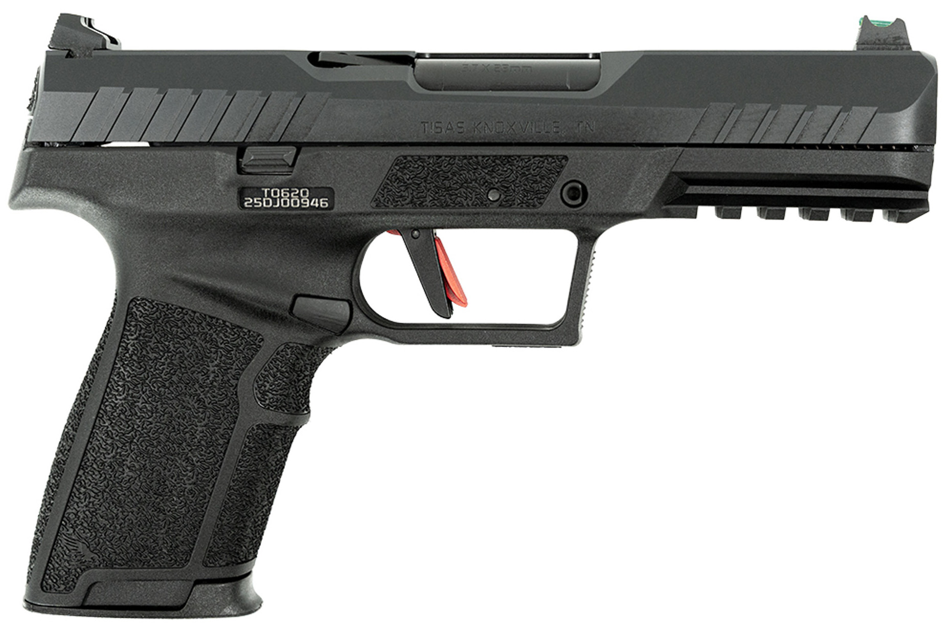 Experience the performance and innovation of the Tisas PX series in the powerful and versatile 5.7x28mm cartridge. The PX-5.7 Raptor OR features a lightweight and ergonomic polymer frame. Ambidextrous slide stop levers and a reversible magazine release make it adaptable for both right- and left-handed shooters. The refined GEN3 trigger with an integrated safety bar offers a crisp tactile break for consistent shooting. Equipped with a fiber optic front sight and black serrated rear sight in a Glock®-compatible pattern provides a wide range of aftermarket sight options. – Notable Features: – Heavy Barrel w/ 11º Target Crown – QPQ/Tenifer Slide & Barrel – Ambi Slide Lock Lever – Fiber-Optic Front Sight – 20rd Easy to Load Magazines – 1yr Warranty/Lifetime Service Plan – Includes: Hard Case – 2 Magazines – Cleaning Kit – Owners Manual – Action Type: Semi-Auto – Operation: Striker Fired – Caliber: 5.7x28MM – Frame/Receiver- Slide Finish: Polymer- QPQ Tenifer – Sights: Fixed- Rear Black- Front Fiber Optic – Capacity (w/ Included Mags): 20+1 – Barrel Length: 4.8 – Barrel Finish: QPQ Tenifer – OAL: 8.5 – Height: 5.55 – Width: 1.38 – Weight (Unloaded): 1.57 lbs.
