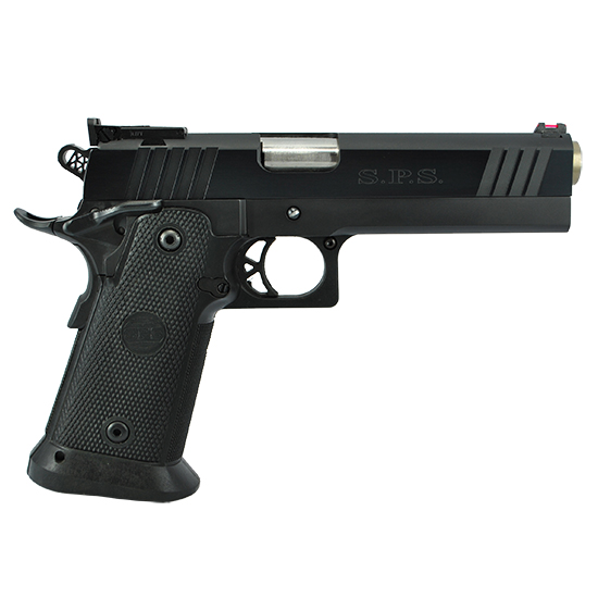 General Description: 9mm semi-automatic with steel frame and steel slide. Single Action. Wide magwell. Front fiber optic dovetail & Rear adjustable Bomar sight. Nylon polymer grips with logo. Extended beavertail & Ambidextrous thumb safety. Lightweight polymer trigger. Skeletal combat hammer. Wide front & rear slide serrations. 1 Magazine included and packaged in hard plastic case. Also includes a gunlock and owner’s manual. Available in Black Chrome Blued and Chrome finish. – Features: – Frame: Steel – Slide: Steel – Barrel: Steel 5 Match Grade – Action: Single – Capacity: 18 Rounds (9mm) – Sights: Adjustable Rear Bomar Front Dovetail w/ Fiber Optic – Grips: Nylon Polymer – Weight: 2.71 lbs. – Overall Length: 8.7