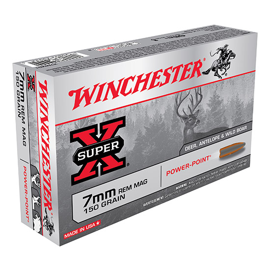 Cartridge: 7mm Remington Mag. – Muzzle Velocity: 3090 – Bullet Weight: 150 – Rounds Per Box: 20 – Rounds Per Case: 200